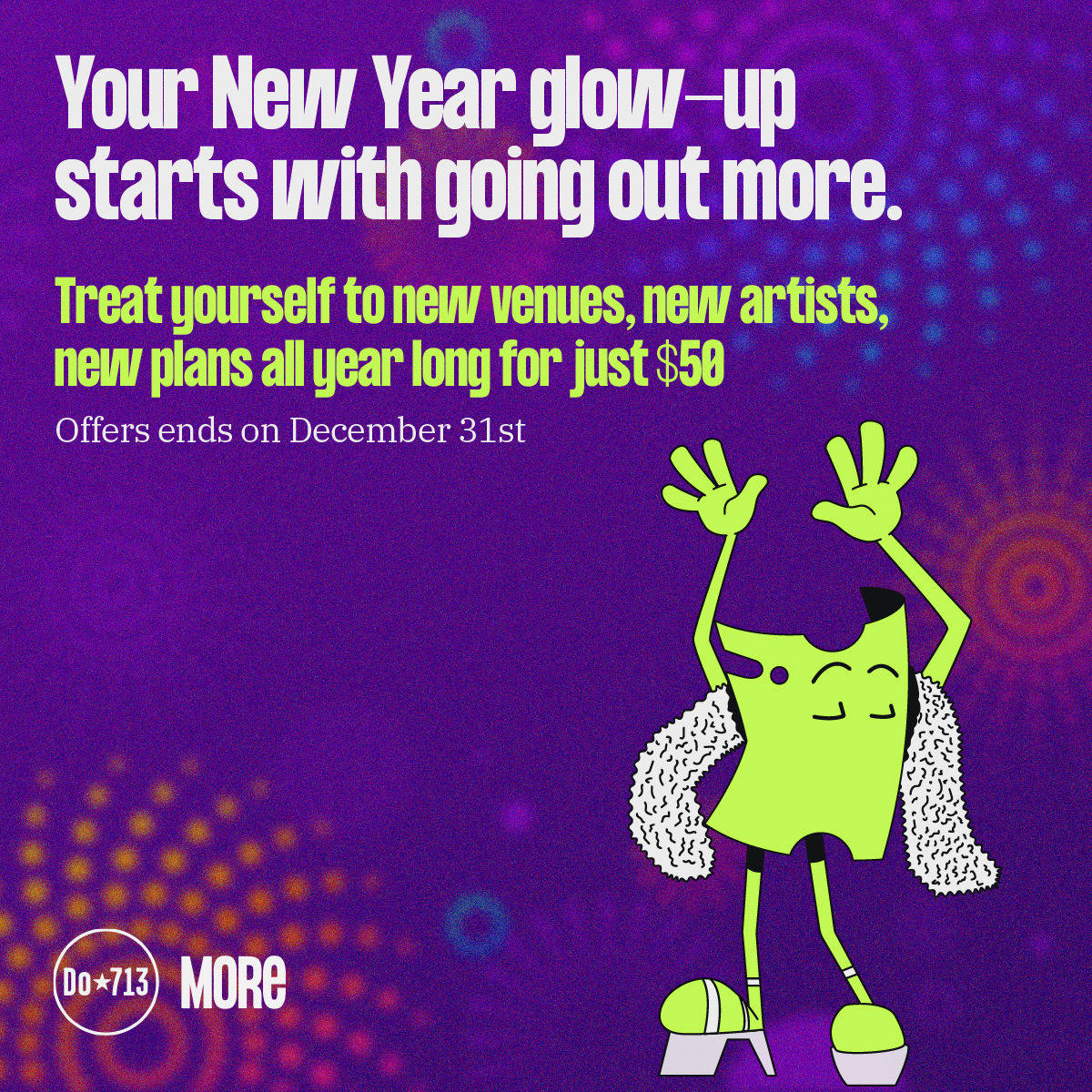 This is your last chance to treat yourself with the DoMORE Holiday Sale! $50 gets you a year of free monthly tickets to the best concerts, comedy, and culture in your city. We did the math so you don't have to – sign up and save today!